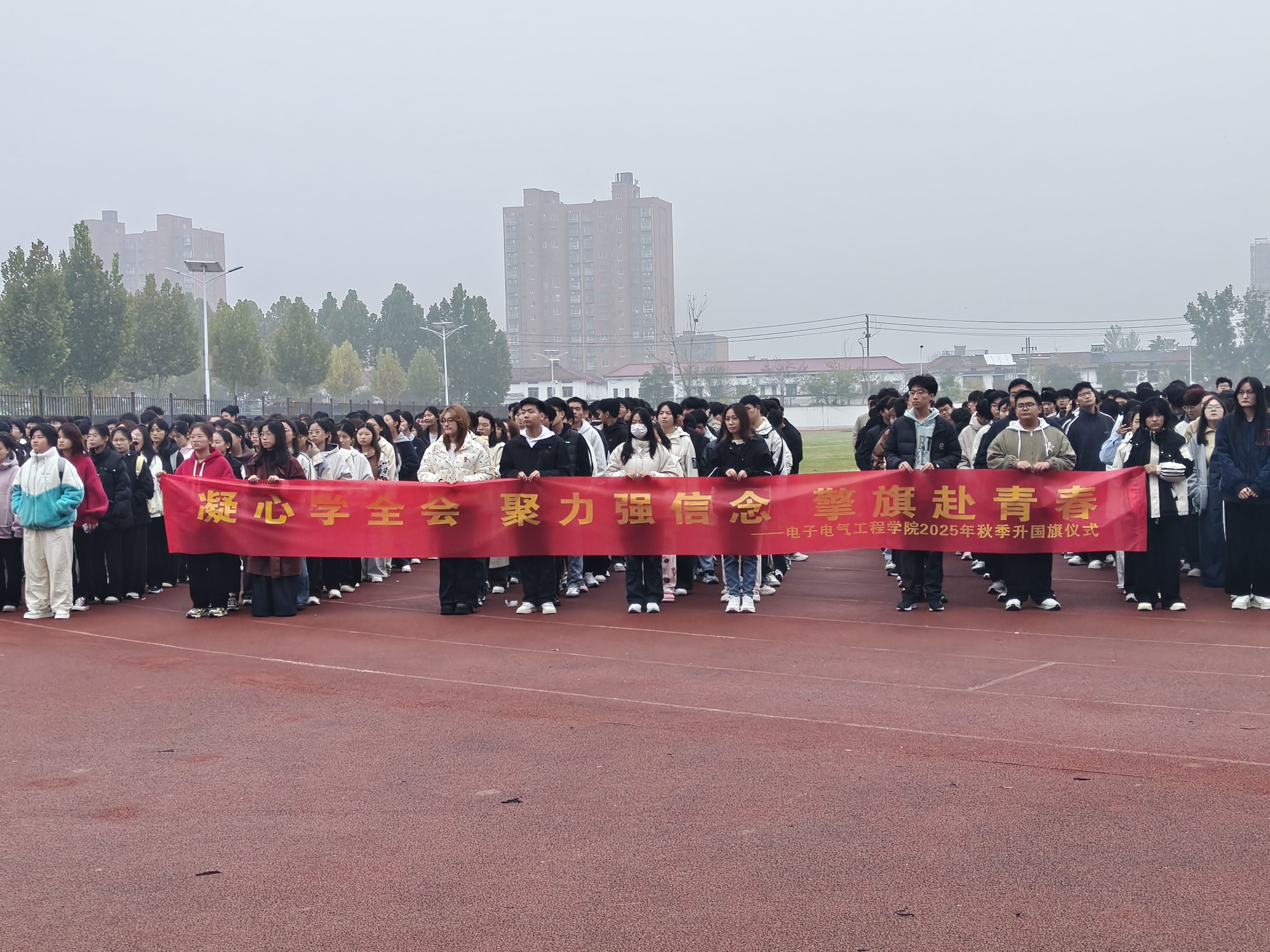 10月27日早上,伟德国际1949官网在睢阳校区隆重举行“凝心学全会、聚力强信念、擎旗赴青春”主题升旗仪式。经理赵纲领、副书记蒋玉涛、全体辅导员及2025级全体新生参加。升旗仪式由2025级辅导员王灿祥主持。