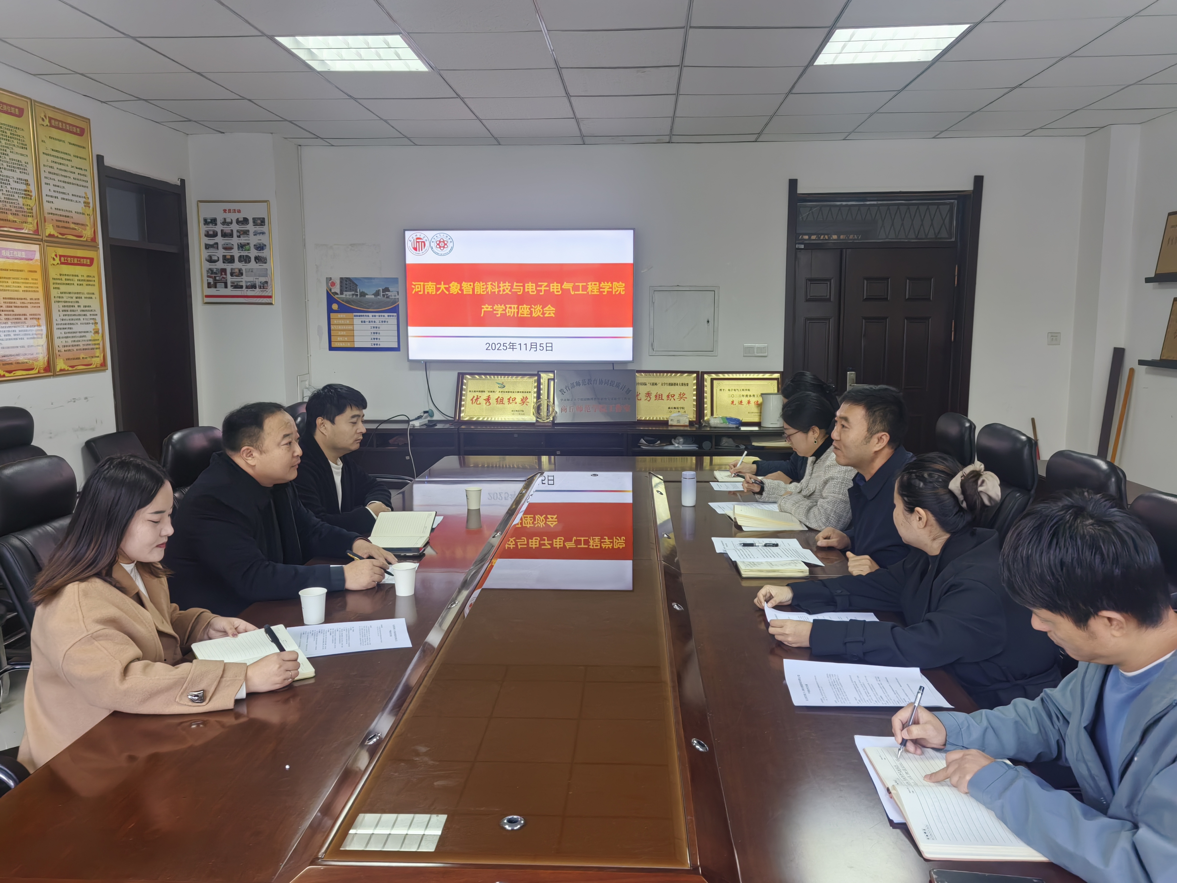 11月5日,河南大象智能科技有限公司董事长赵亚一行三人莅临公司,双方围绕人才培养、技术研发与成果转化等议题进行深入探讨和交流。公司党委书记蒋玉涛,电子系主任孙春志、学工办主任孙莉娟,通信系教师赵茜、26届毕业生辅导员郑敏参加。