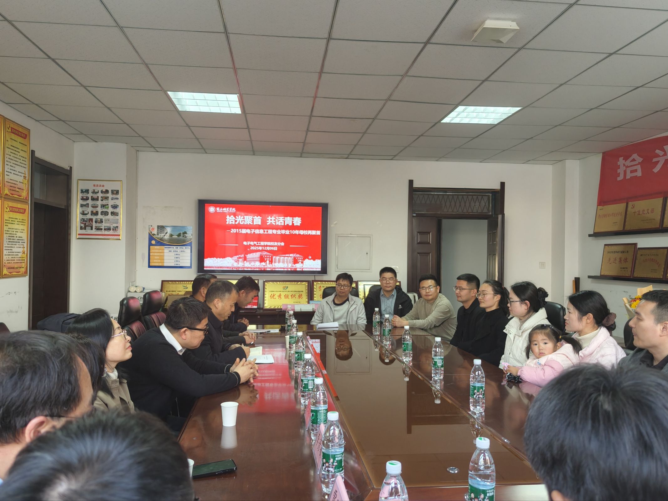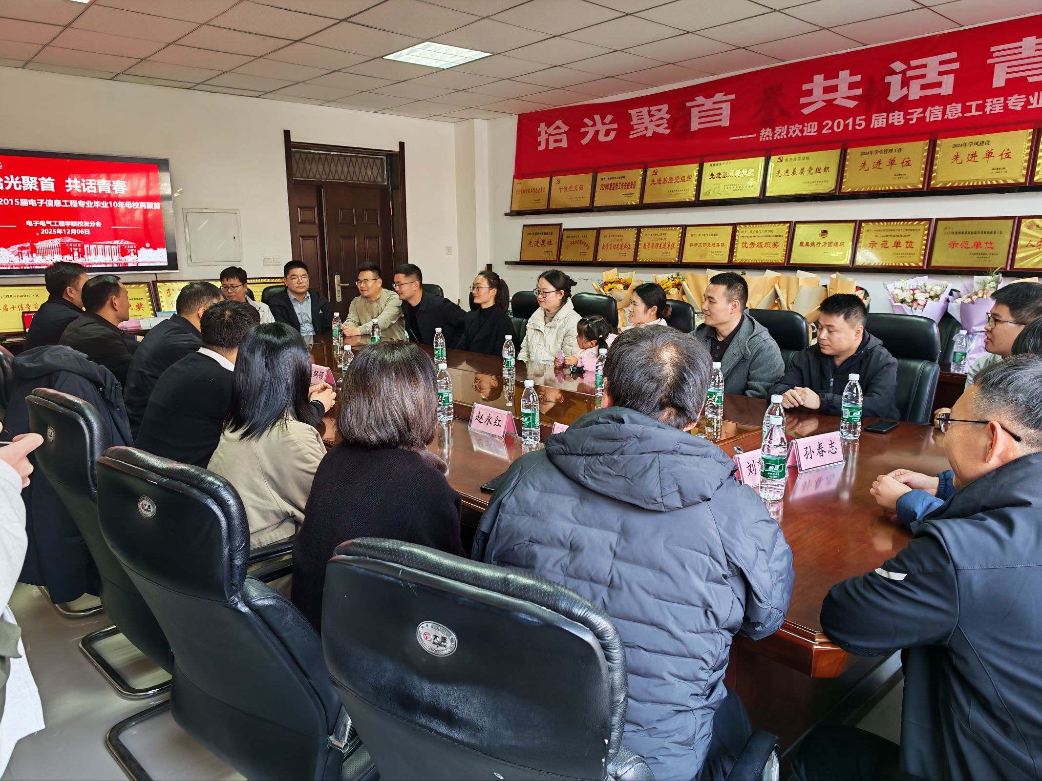 12月6日,2015届电子信息工程专业的员工会跨越山海,从全国各地返回母校,奔赴一场 “拾光聚首 共话青春” 的温情之约。赵纲领、孟学超、朱震杰、李彦敏等多位当年授课指导教师莅临现场,与员工们欢聚一堂,共忆往昔、共叙情谊。活动由公司党委副书记蒋玉涛主持。