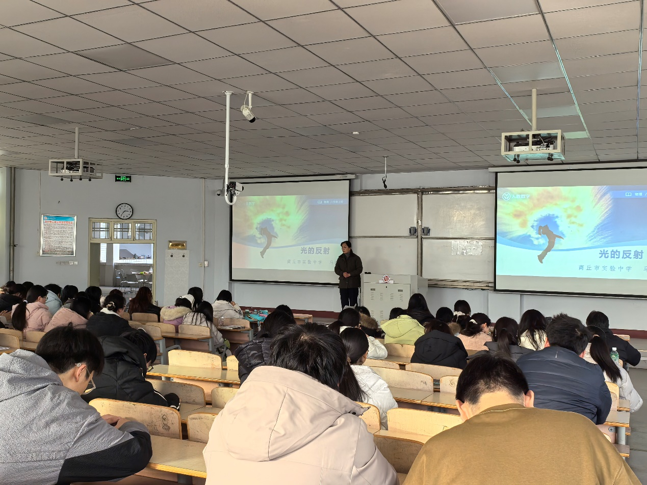 为深化物理学工作坊建设,夯实师范生专业教学实践能力培养,推动河南省师范生实践能力提升项目走深走实,助力员工系统掌握物理教学设计与微型课授课技巧,2025年12月24日,伟德国际1949官网依托物理学工作坊平台,在河南省师范生实践能力提升项目支持下,特邀商丘市实验中学马晓慧老师,在一号教学楼207教室为2023级物理学全体同学作专题报告。活动由林可君老师主持。