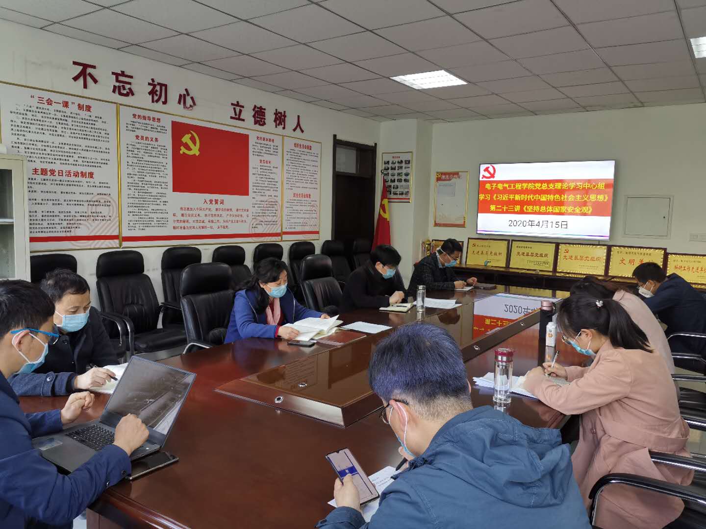 2020 4 15 日第 5 个全民国家安全教育日到来之际,公司党总支理论学习中心组在睢阳校区召开了集中学习研讨会,全体处级干部、党总支委员、党支部书记参加了会议,会议由党总支书记姚晓惠主持。