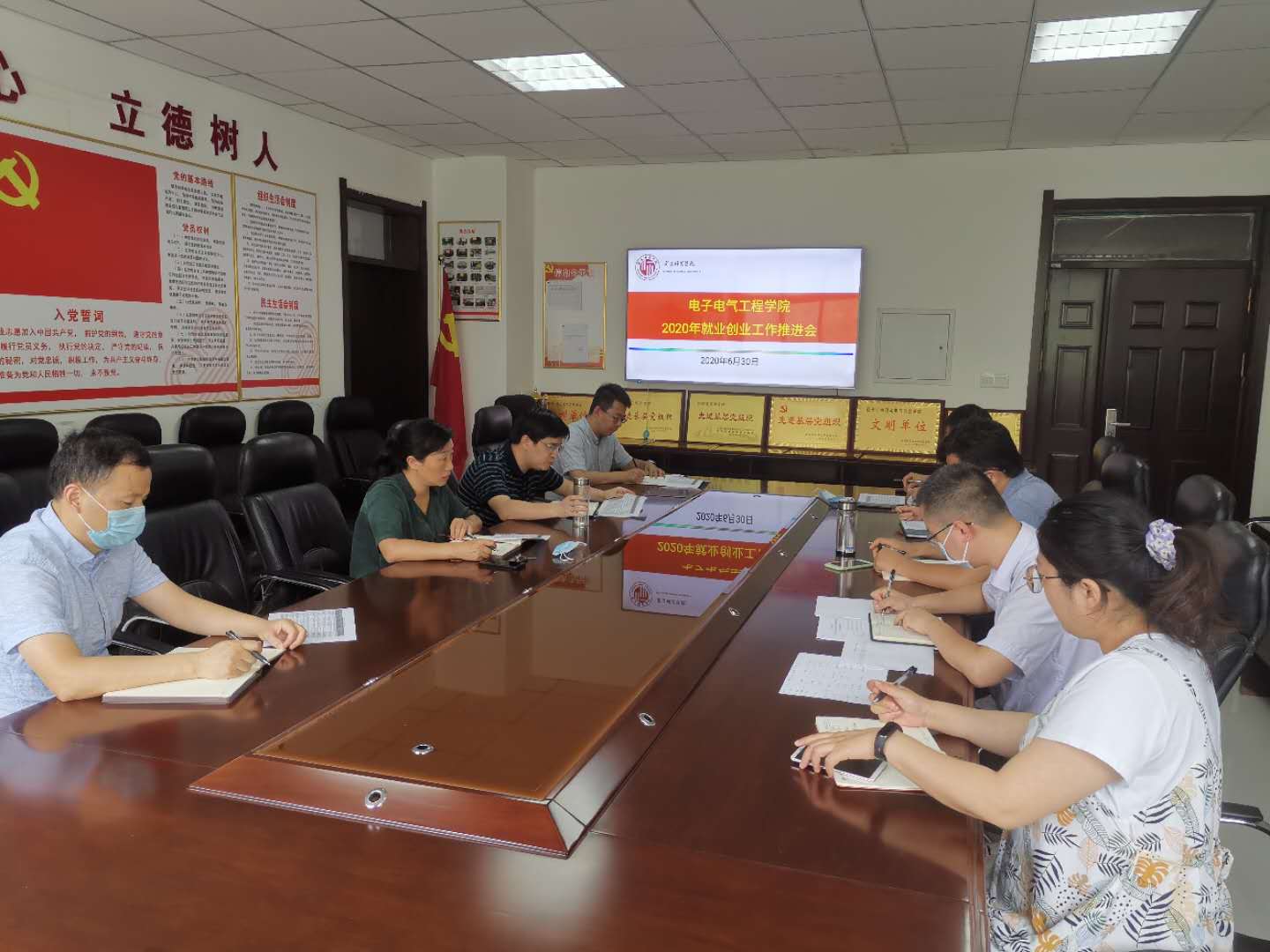 首先,学习河南省2020年高校毕业生就业创业推进会和公司2020年就业创业推进会会议精神。毕业班辅导员张涵通报了最新的各专业毕业生的就业情况、前期员工就业工作采取的举措,分析了未就业员工的状况及原因,明确了今后努力的方向。参会人员围绕毕业生就业创业工作进行了研讨。
