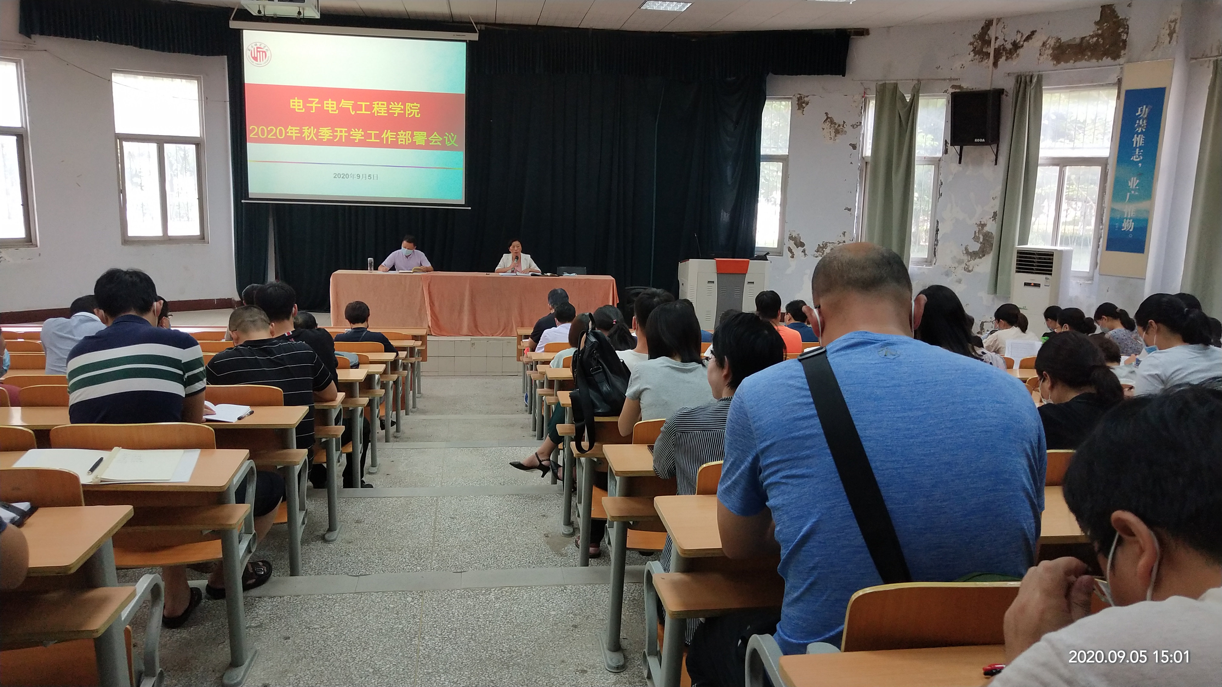 首先,姚晓惠通报了暑期工作情况:人才培养方案修订、实验室安全应急处置工作、招生宣传工作、困难员工家访工作、毕业生就业工作和档案邮寄、迎新准备工作等。接着传达了9月3日公司全体中层干部会议精神,对新冠肺炎疫情防控工作、精神文明创建工作、开学各项准备工作进行了安排部署。接着,副经理赵纲领传达了《关于2020年秋季学期错峰上课及教学计划调整的通知》,并对本学期教学工作、实习实训、毕业论文(设计)工作等进行了具体安排部署。