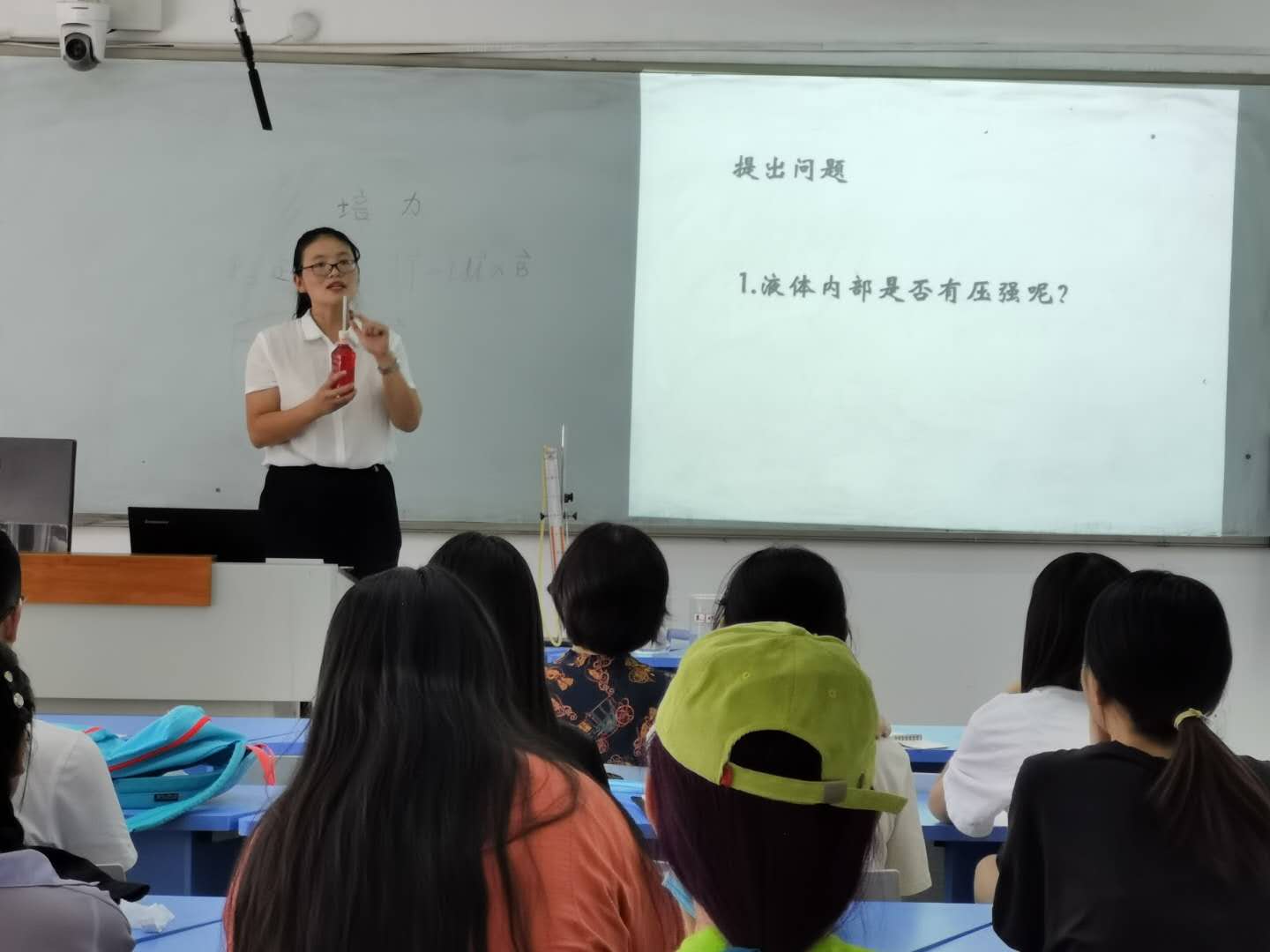 袁文洁老师的观摩课,每个教学环节处理得环环相扣,过度自然。通过实验来探究影响液体内部压强大小的因素,引导员工怎样展示实验中液体压强的特点,让员工思考实验中应测量的物理量。这堂课向大四物理学专业员工展示了如何设计课堂,如何分析教材,如何运用恰当的教学方法以及如何板书等。一堂45分钟的精彩观摩课结束后,袁文洁老师又与物理学专业员工及指导教师进行了充分的交流讨论,回答了从板书设计、实验器材制作到就业面试等等员工非常关心的问题。本次观摩课在大家热烈的掌声中结束,员工在本次课中增长了见识,对课堂教学有了更深的认识。
