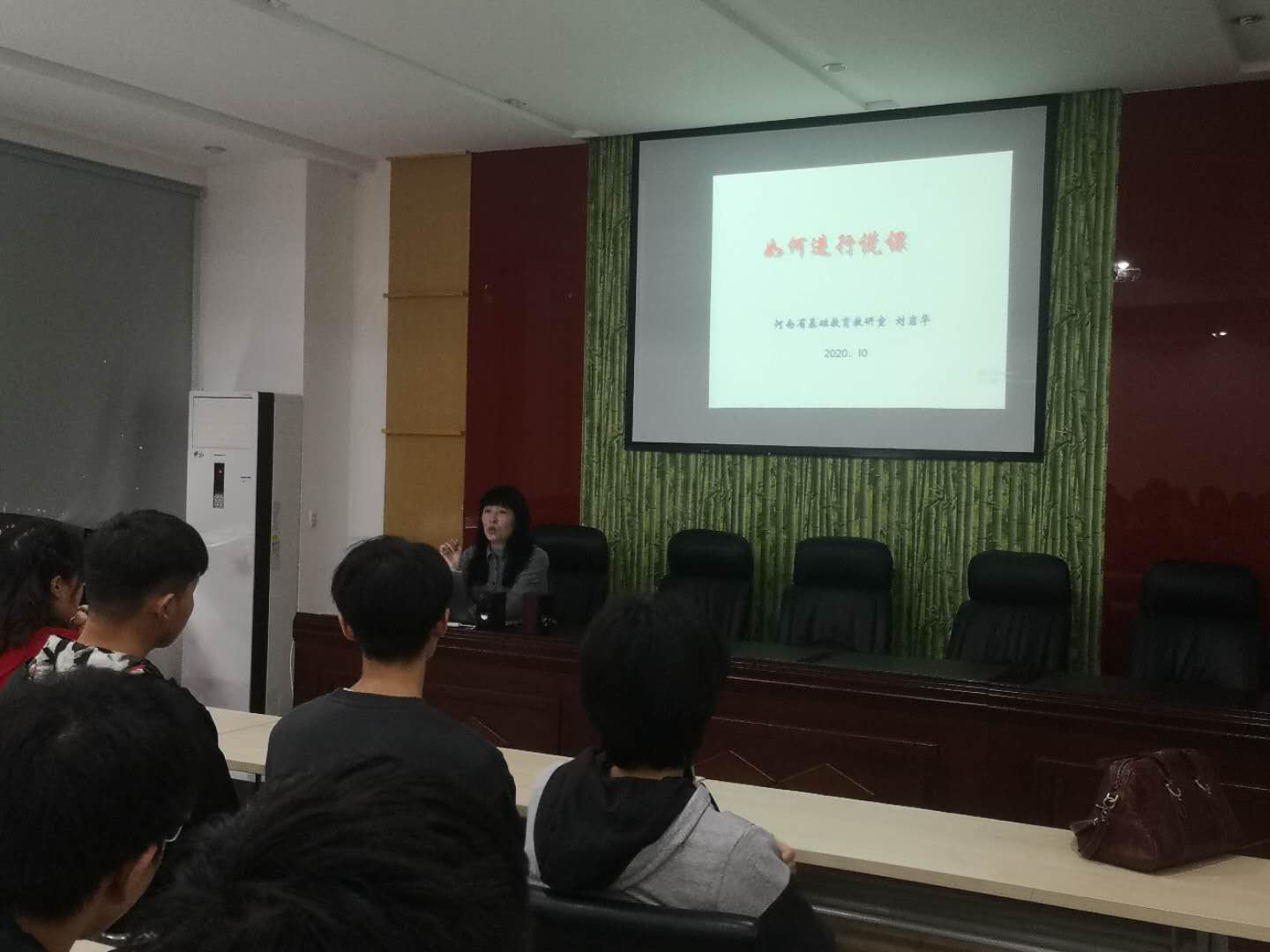 说课作为教师教研的一种活动形式,已被获得广泛的认可。为了让师范生了解说课活动,提高师范生说课技能,提高教育共同体项目培训效果,伟德国际1949官网特邀请河南省基础教研室物理教研员刘岩华老师于10月15日11点在睢阳校区物理楼208会议室做 《如何进行说课》的报告,物理学18级工作坊全体员工到场听取了刘老师的讲座。