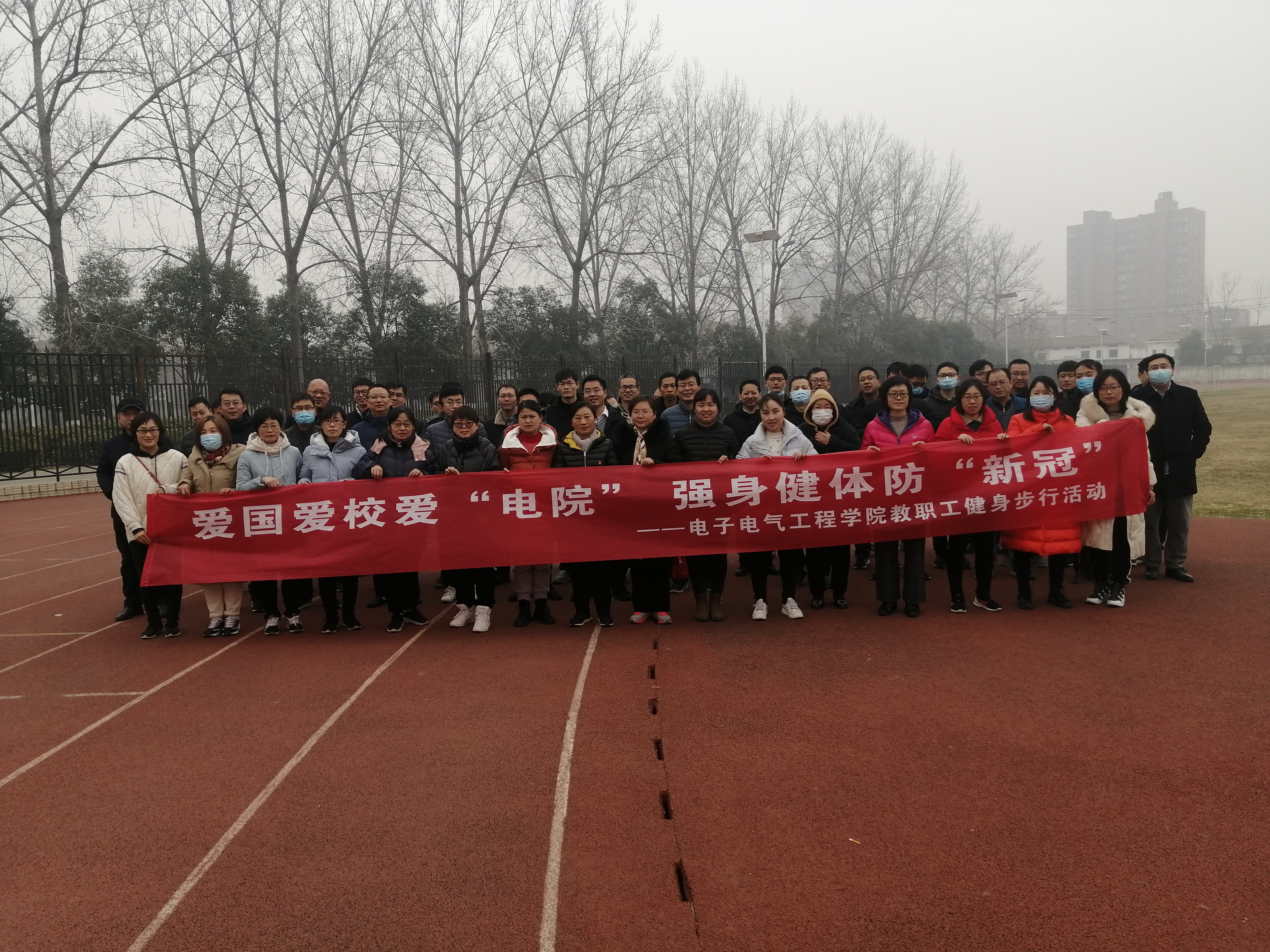 为了迎接2021新年,倡导“爱国防疫、健康工作”理念,增强教职工集体凝聚力,12月28日,伟德国际1949官网工会组织全院教职工在睢阳校区体育场开展了“爱国爱校爱电院,强身健体防新冠”健步行活动。