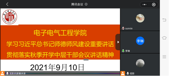 会上,李琳领学了习近平总书记2014年9月9日在北京师范大学师生代表座谈会上的讲话及2016年12月在全国高校思想政治工作会议上的讲话,要求各位老师要深入学习习近平总书记关于师德师风建设的重要讲话精神,坚持教育与育人、言传与身教、潜心问道与关注社会、学术自由与学术规范相统一,争做政治素质过硬、教学科研水平高、适应新时代发展的“四有”好老师。之后传达了公司2021年秋季学期中层干部会议的主要内容。