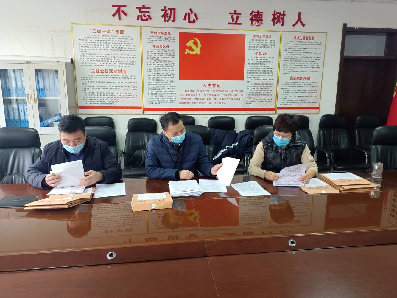 1月11日,公司党委书记李琳、经理赵纲领、副书记蒋玉涛带领各员工支部书记在睢阳校区开展员工党员档案材料专项检查。