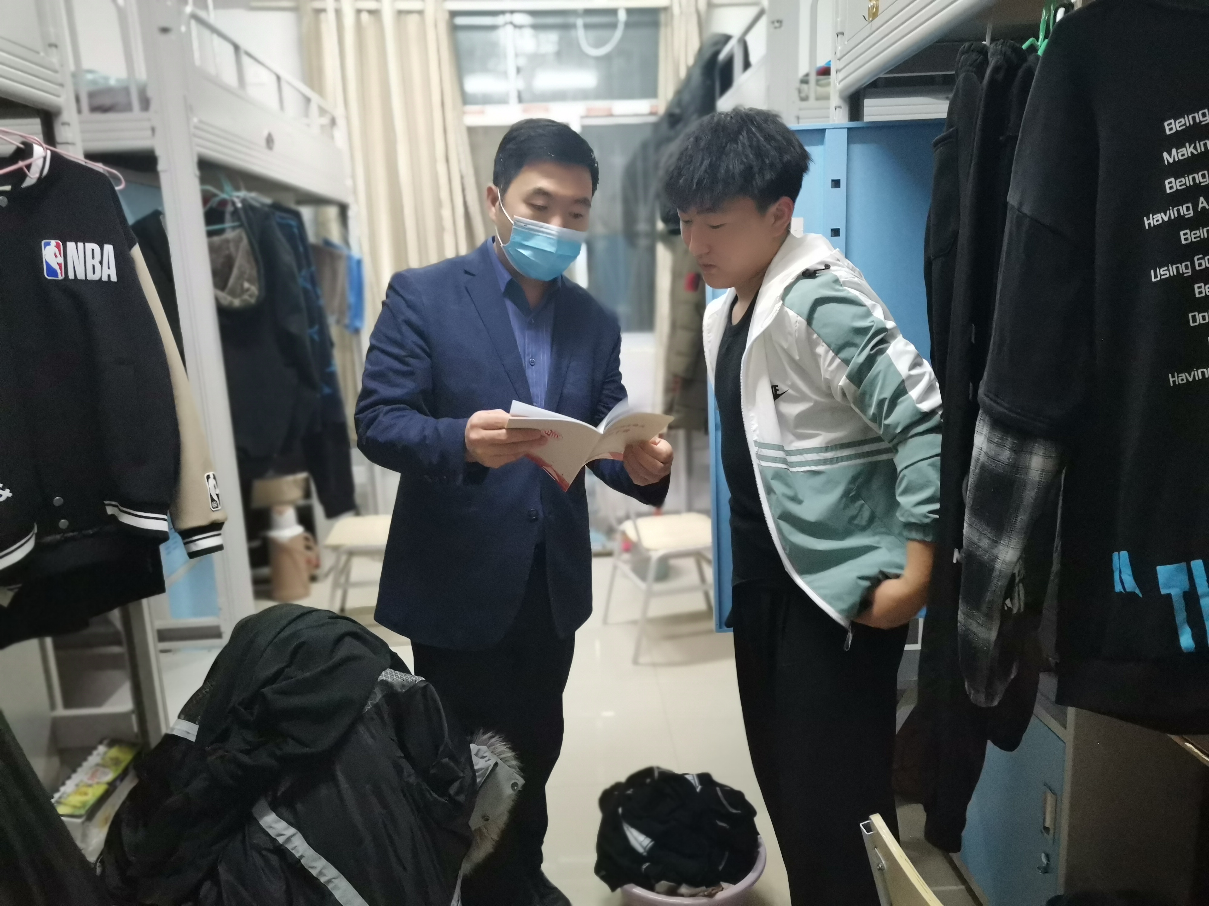 走访中,领导老师们发放了疫情防控知识宣传手册,传达疫情防控的最新要求,对宿舍卫生、安全情况等方面进行检查。他们与同学们亲切交流,叮嘱一定要加强宿舍日常环境卫生和安全管理,杜绝使用违规电器,杜绝宿舍明火及烟头隐患,加强宿舍文化建设,共同创建温馨、舒适、文明的宿舍环境。