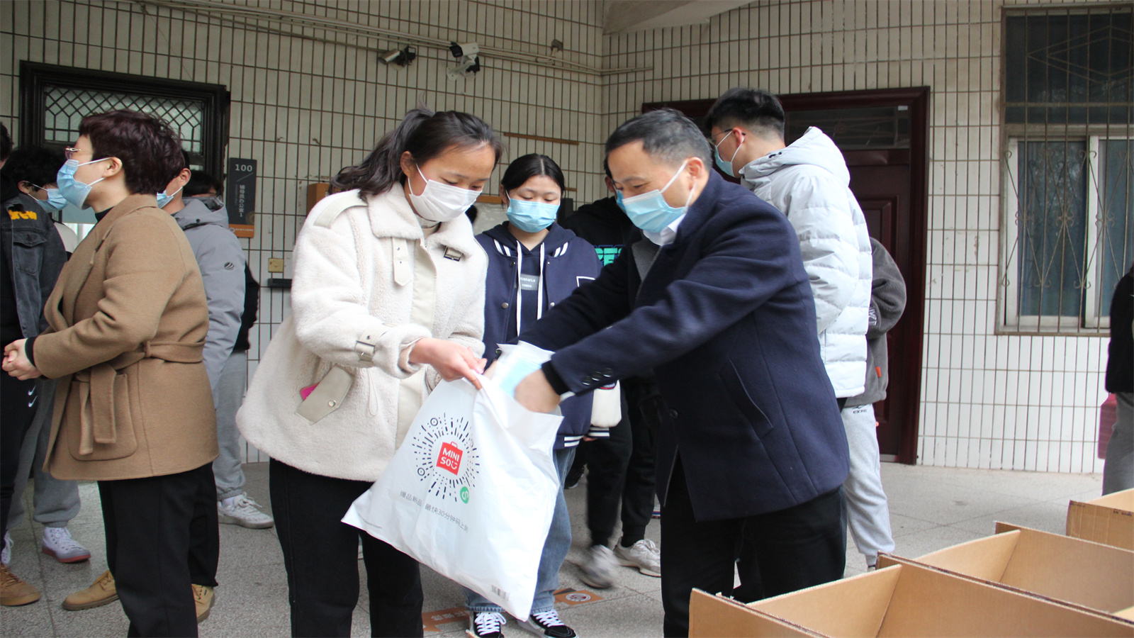3月21日,公司党委书记李琳、经理赵纲领、副书记蒋玉涛在睢阳校区为全院师生发放防疫口罩,扎实开展“我为师生办实事”实践活动。
