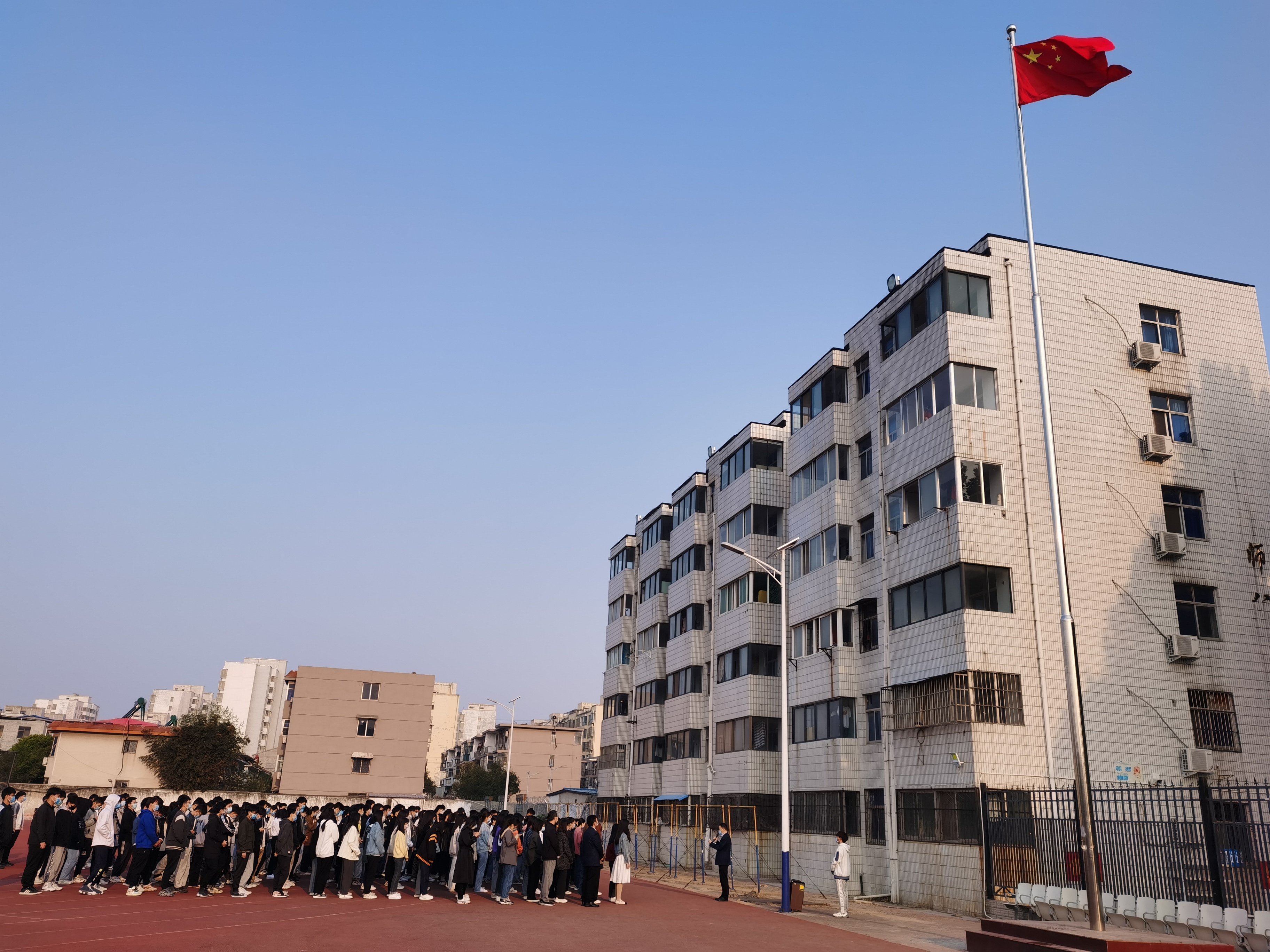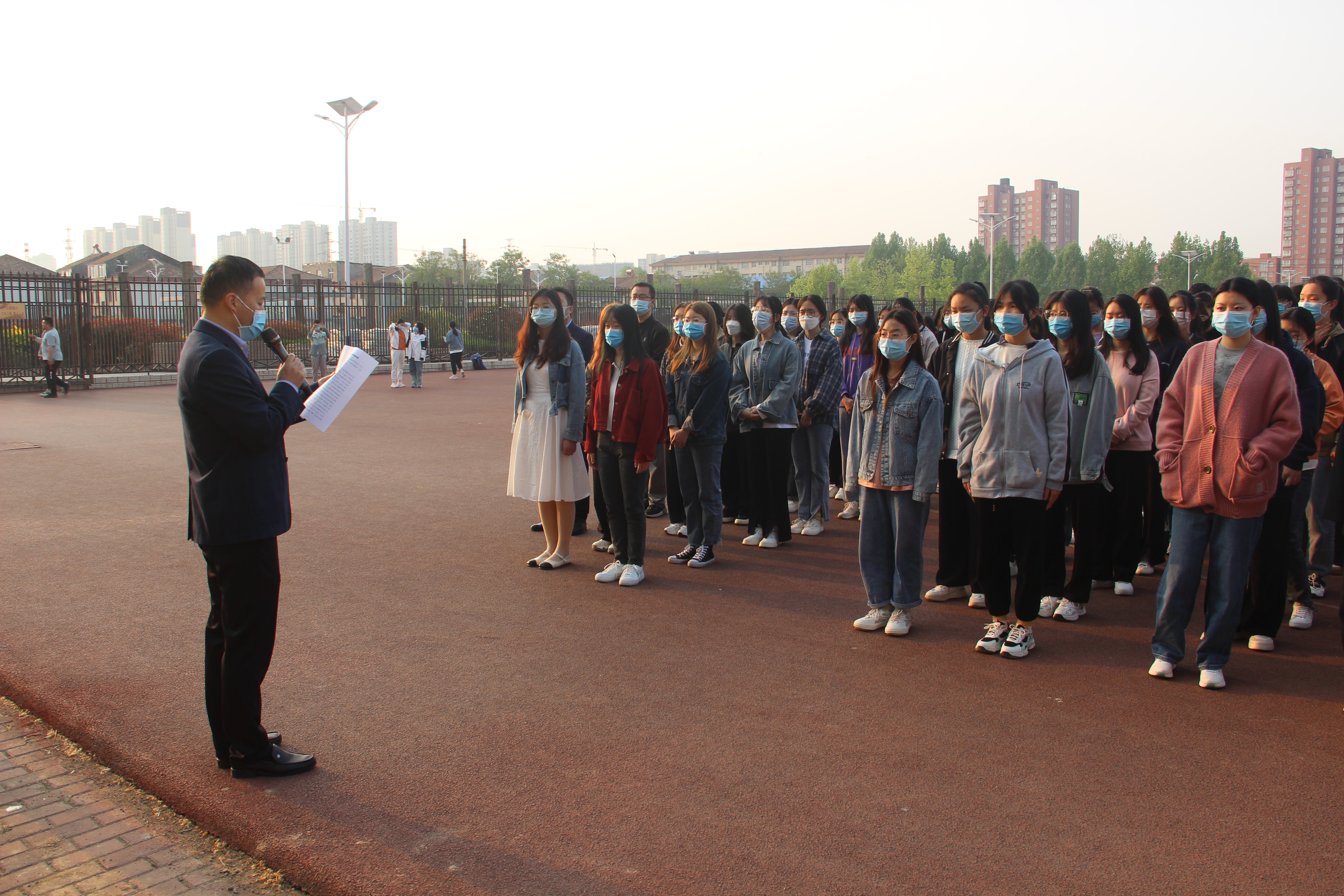 首先进行了庄严的升旗仪式,全体师生共唱国歌并行注目礼,鲜艳的五星红旗迎着朝阳冉冉升起,象征着伟大祖国的日益繁荣昌盛。接着,员工代表乔佳俊进行发言,号召同学们在新冠肺炎疫情十分严峻的情况下,要更加紧密团结在党中央的周围,砥砺奋进,开拓进取,为社会主义事业贡献自己的力量。随后,员工代表高锦华、张石林朗诵《我们的党》,慷慨激昂的朗诵使本次升旗仪式达到了高潮,更加坚定了同学们跟党走的信念。