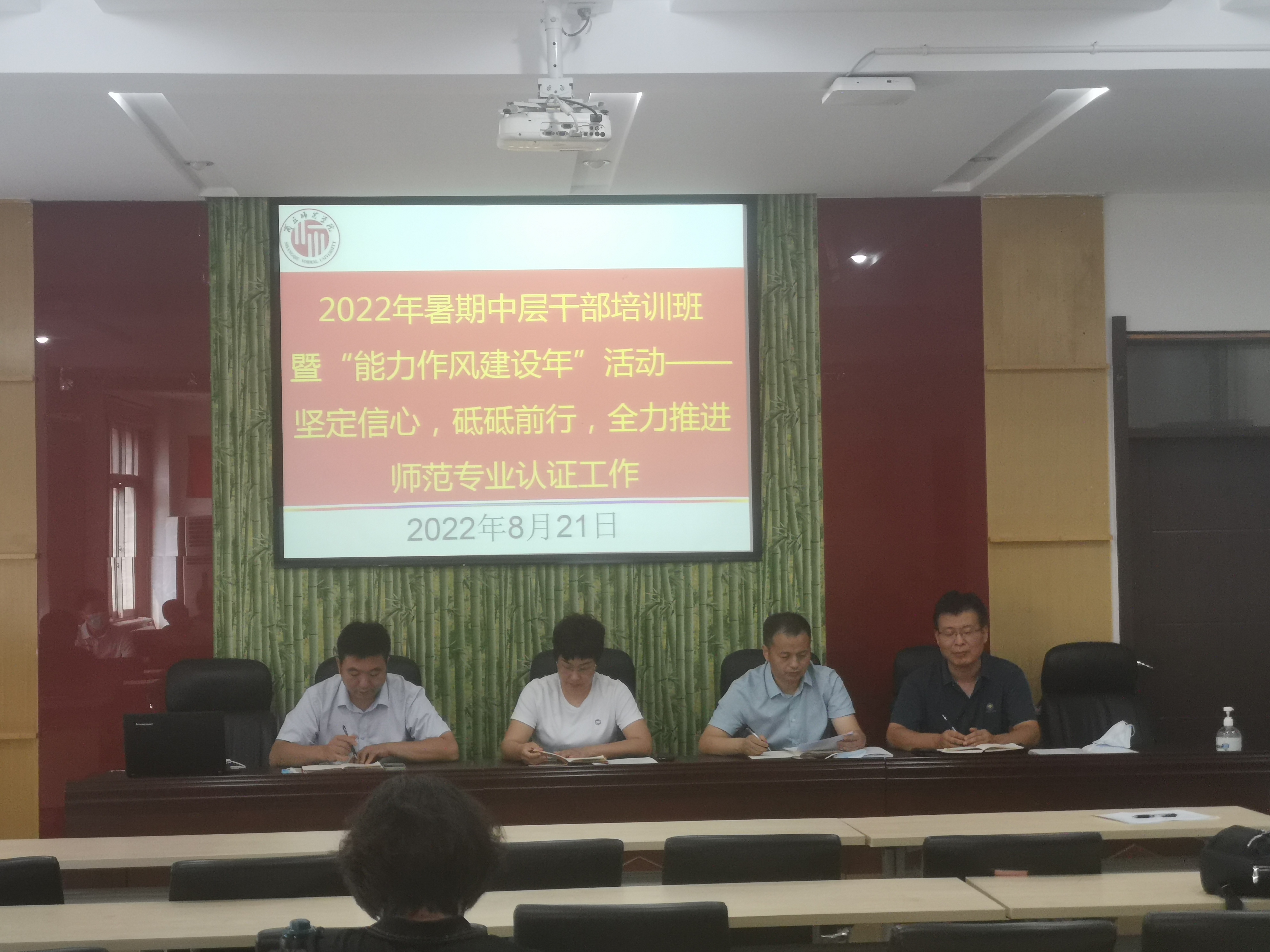 8月21日,公司于睢阳校区召开2022年暑期中层干部培训班暨“能力作风建设年”活动——坚定信心,砥砺前行,全力推进师范专业认证工作。公司领导班子成员、师范专业认证工作组全体成员、物理系全体教师参会。