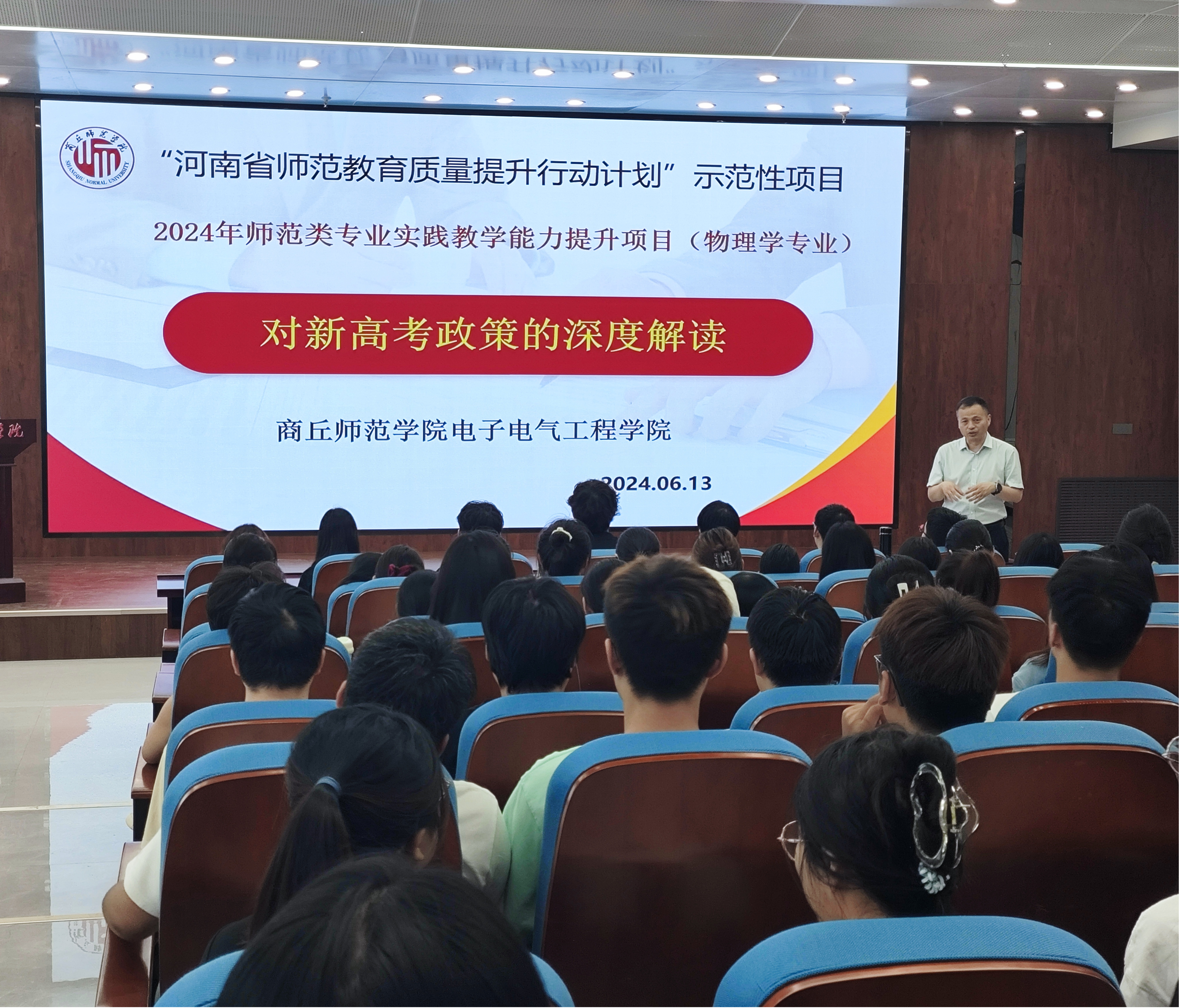 为落实“河南省师范教育质量提升行动计划”的目的和要求,根据师范类专业实践教学能力提升项目的具体进度和安排,伟德国际1949官网于6月13日下午在睢阳校区工科实训楼203会议室开展了关于“新高考”主题的研修活动。此次培训活动邀请到商丘市第一高级中学物理教师张文莉老师为同学们作题为“对新高考政策的深度解读”的报告,2021级物理学专业的全体同学参与了研修活动,活动由项目组成员李莉主持。