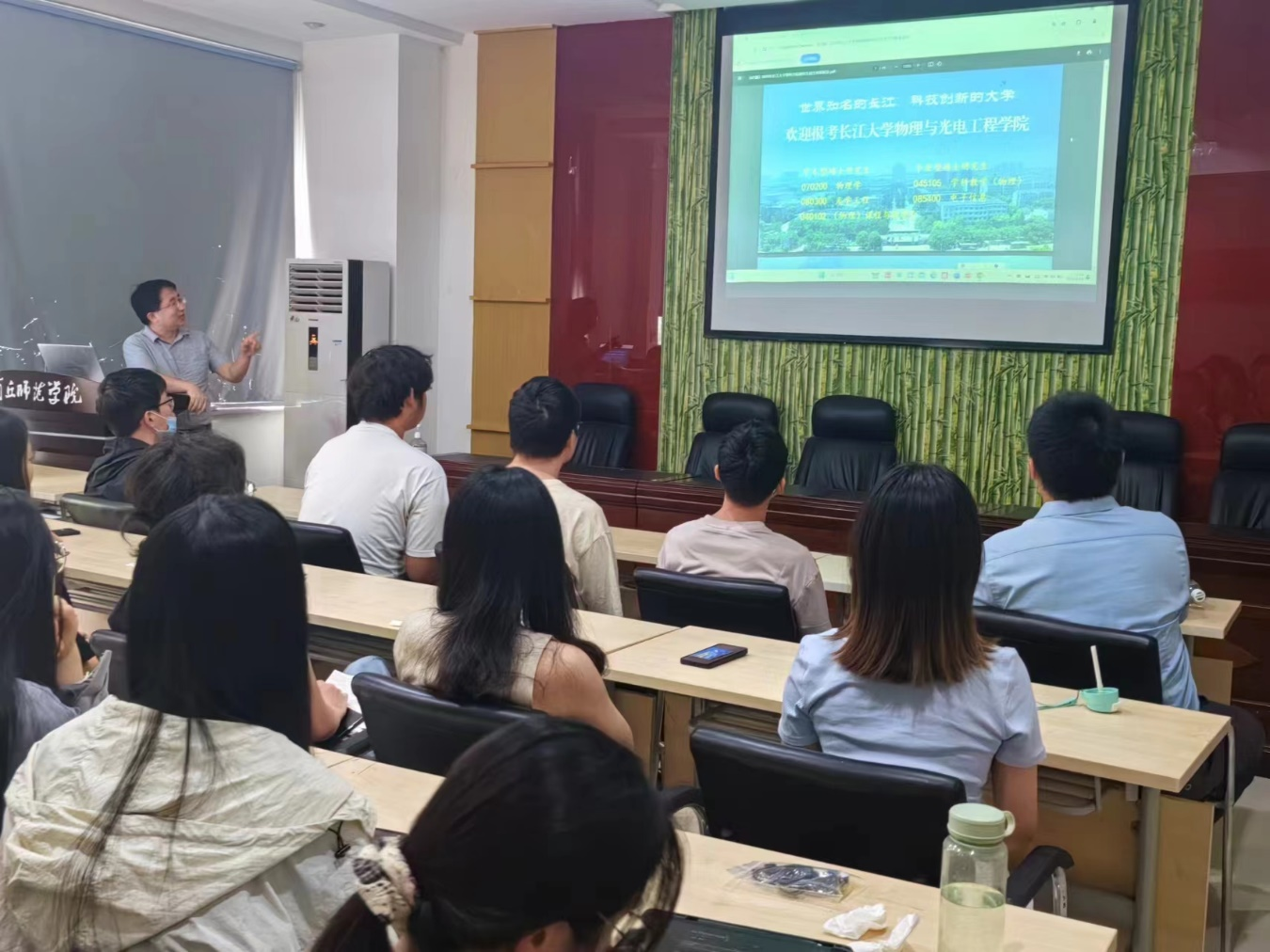 会上,长江大学硕士生导师、副教授程书博简要介绍了长江大学的建校历程、公司概况,并从公司专业优势、科学研究成果、实验实训环境、导师队伍、人才培养、招生录取等六个方面进行了详细的解读。水涛鼓励公司学子积极报考长江大学物理与光电工程公司并对员工关心的问题进行了详细的解答和交流。