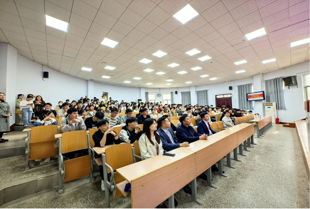 华为终端业务部HRD(人力资源总监)蔡梓萱,华为终端商丘办事处主管彭正伟,华为终端商丘办事处零售经理刘书丞,公司党委副书记蒋玉涛、全体辅导员老师出席,公司350余名2023届毕业生参会。