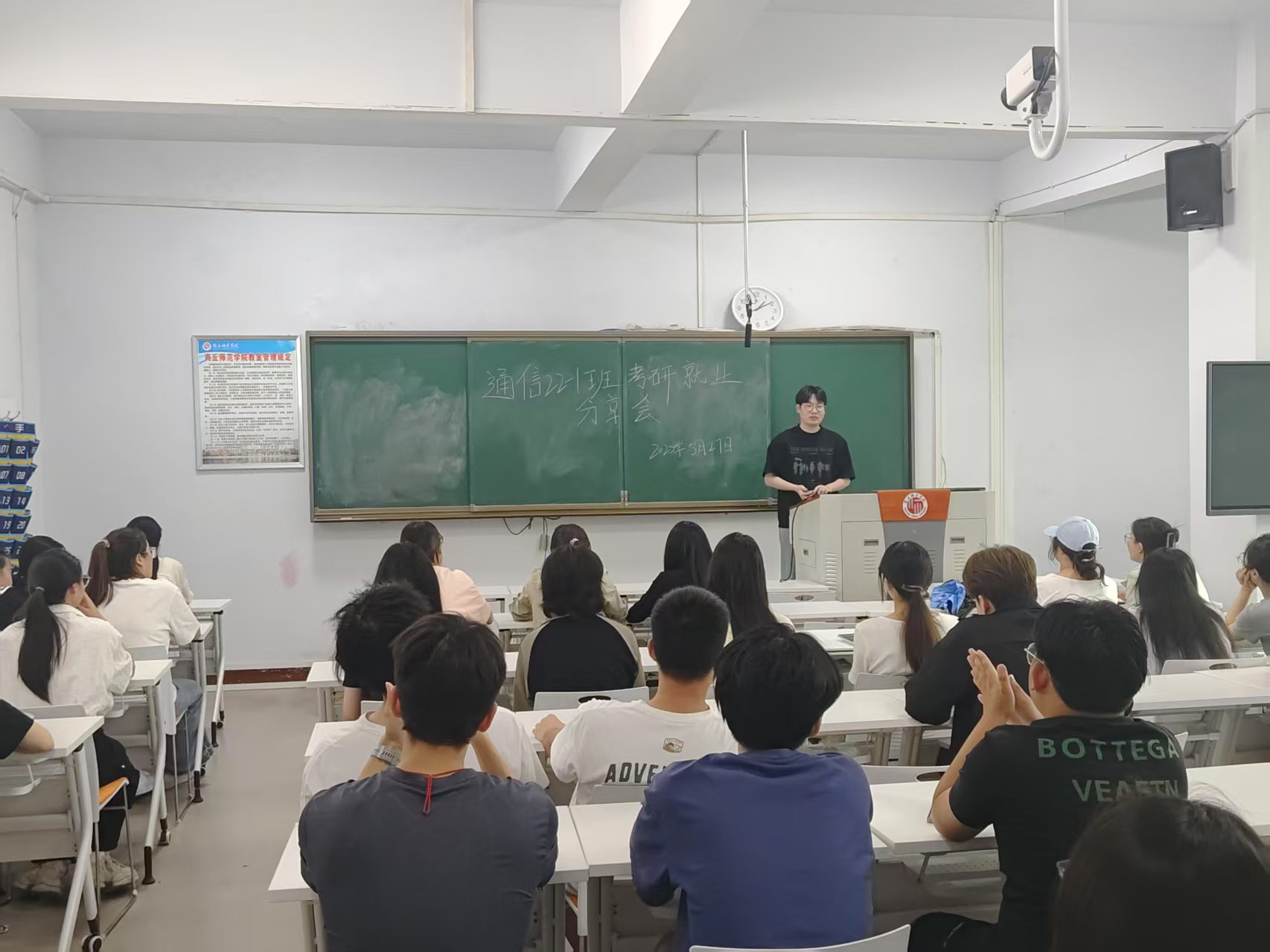 5月27日,公司于1号教学楼成功举办考研、就业经验分享会。本次分享会邀请到多名2021级在考研和就业领域表现优异的学长学姐,为同学们答疑解惑,分享宝贵经验,2022级各班员工参会。