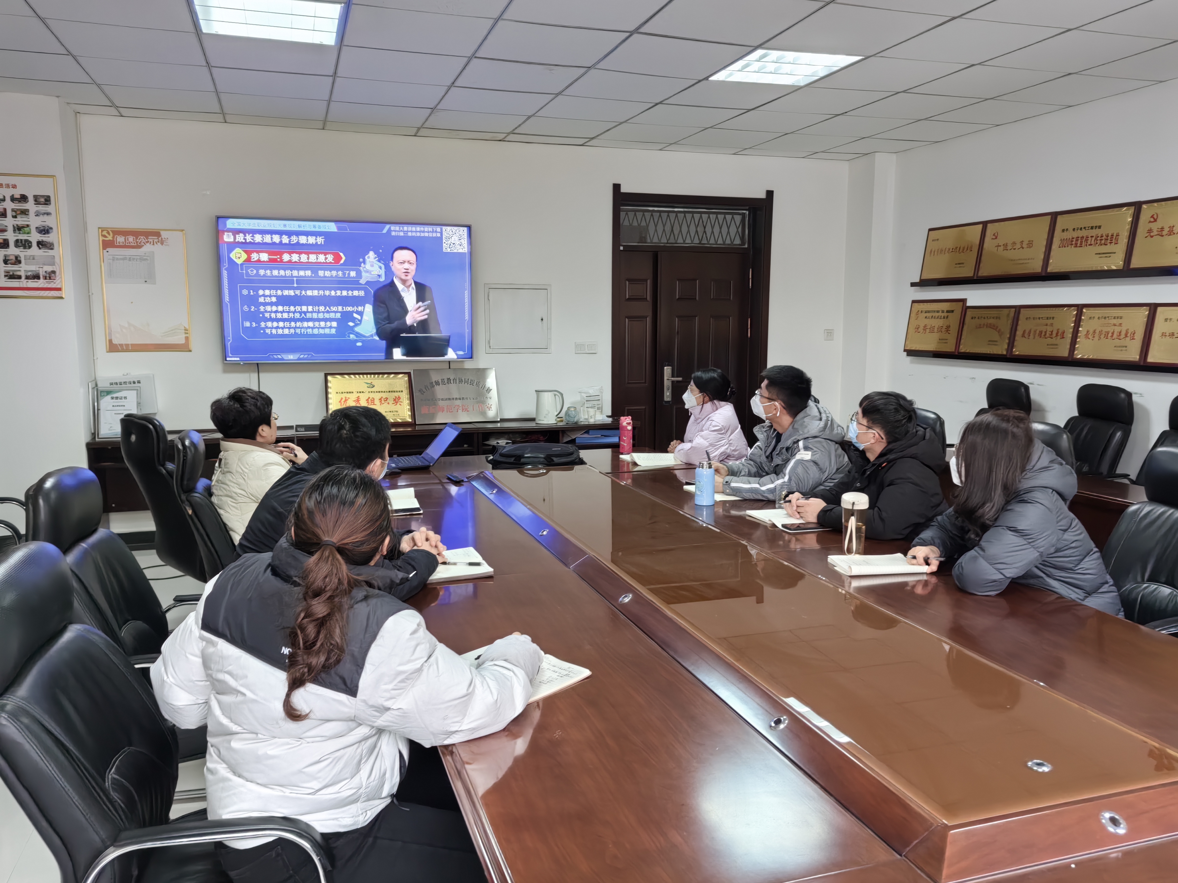 11月29日,公司在睢阳校区组织观看河南省职业规划大赛网络公益直播课,主讲人是万学教育董事长张锐博士。公司党委书记李琳、党委副书记蒋玉涛,全体辅导员老师参与观看。