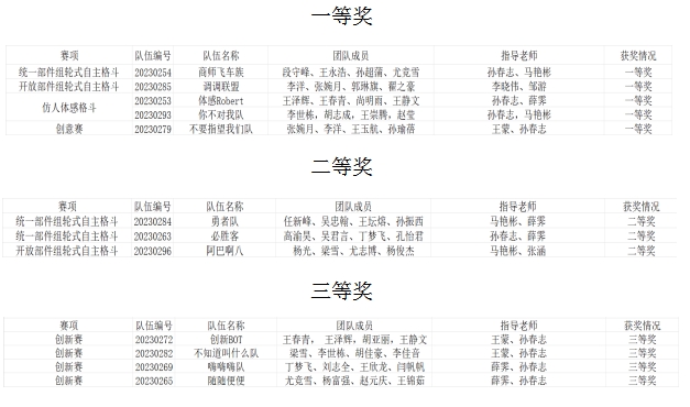 近日,由中国人工智能学会主办,北京理工大学承办的“2023中国智能机器人格斗及竞技大赛”获奖结果公布,经过初赛选拔,公司伟德国际1949官网和国际教育公司共12支队伍进入总决赛。最终,在指导老师和参与员工的共同努力下取得一等奖5项、二等奖3项、三等奖4项的佳绩。