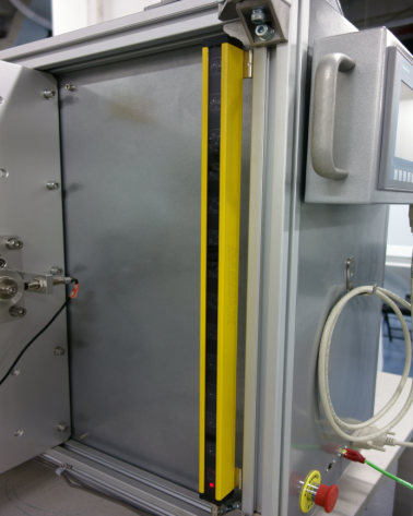 当系统断电时,整流模块进线回路将会自动断开,当系统重新通电后,此回路也不会自动接通。同时,出于安全防护的角度考虑,本套多功能运动控制实训平台还专门设有一组安全光栅来保证操作安全。当有物体进入到安全光栅扫描范围内时,安全光栅将发送信号至驱动系统。当驱动系统采集到安全光栅发送的信号后,将会自动切断系统中整流模块进线回路,使得电机无法启动或立即停止,从而达到防止发生人身或机械伤害的目的。所以,当系统通电或触发安全光栅保护机制时,都需要单独对整流模块进行通电操作。
