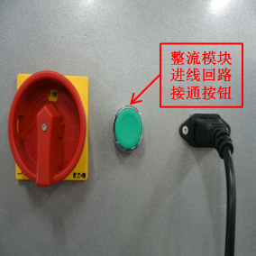 此时,需要手动按动如下图所示按钮,进行接通整流模块进线回路的操作。注意:部分设备的“整流模块进线回路接通按钮”安装在急停按钮附近。