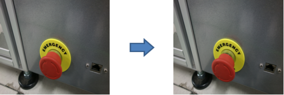 将急停按钮由“按下”位置,顺时针旋转复位至“抬起”位置。