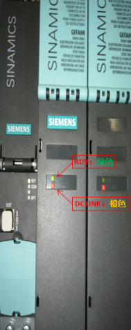 当整流模块进线回路接通后,整流模块上的“RDY”指示灯将会显示为绿色,“DC LINK”指示灯将会显示为橙色。