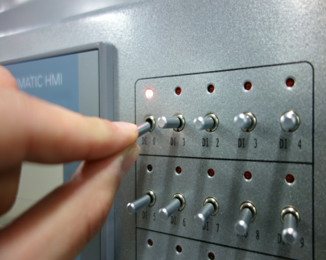 人机交互面板装有20个双位置开关,其中的16个开关接入至控制单CU320-2 PN,4个开关接入至低压配电系统的端子排中。双位开关使用方法如下图所示: