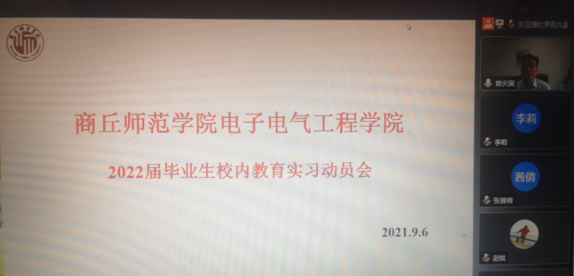 9月6日,伟德国际1949官网召开了2022届毕业生线上教育实习动员会,会议由刘亚强博士主持。副经理曾庆国、校外指导老师张茜倩、实习指导教师李彦敏、刘亚强、李莉、程文静、乔红贞、林可君、欧阳小芳、和2022届物理学专业全体员工参加了动员会。