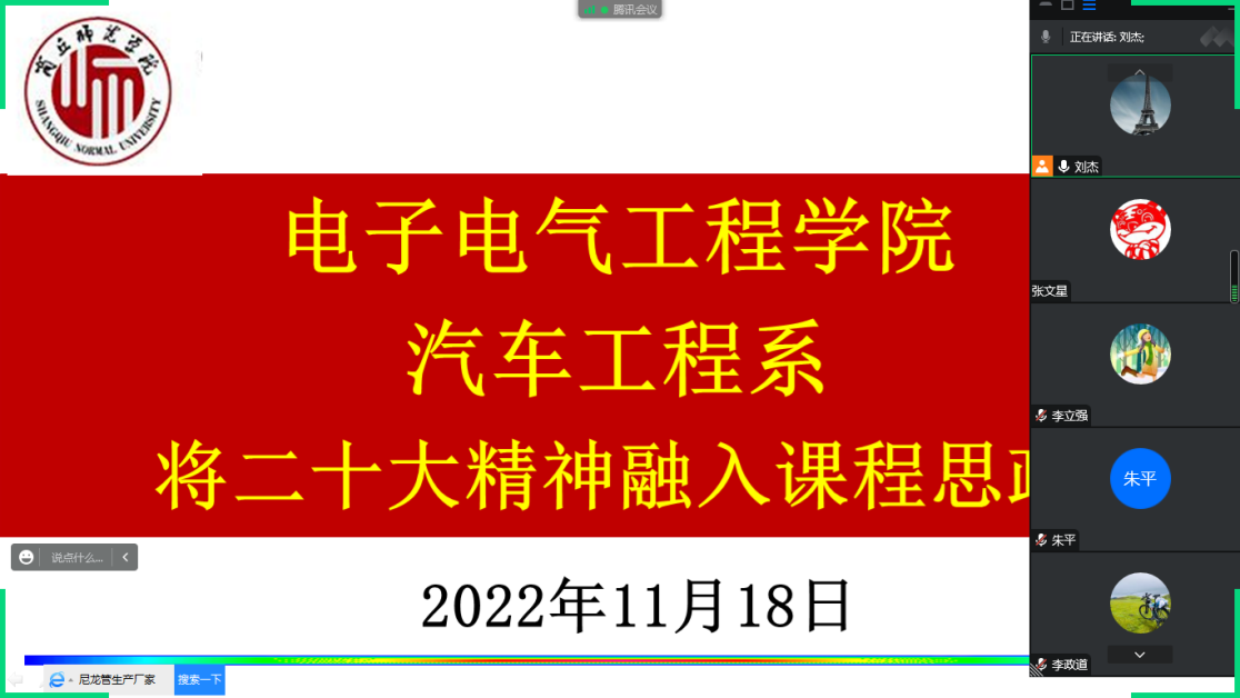 2022年11月18日,汽车工程系线上召开了将“党的二十大精神”融入课程思政教研活动。会议由系主任刘杰老师主持,汽车工程系全体教师参加了会议。