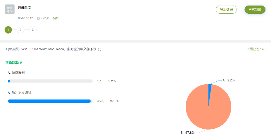 公开课伊始,课程以“变频空调为什么能省电”为话题,引入节能减排、绿色发展,切合当前“碳达峰”、“碳中和”等理念融入课程思政,通过学习通线上平台进行基础知识抢答、随堂练习等线上互动环节,强化员工对理论内容的学习。