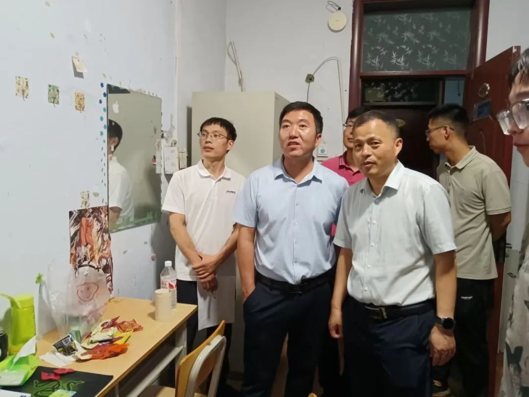 晚上7点,院领导老师来到员工宿舍与同学们亲切交谈,深入了解新报到员工的基本情况,对大家未来的学习生活以及在校安全提出建议,鼓励同学们树立奋斗目标,做好人生和学业规划,加强体育锻炼,积极面对老员工活。叮嘱同学们团结互助,筑牢安全意识,做好宿舍管理,共建和谐文明积极向上的宿舍文化氛围,并现场解决了部分员工反映的实际问题。