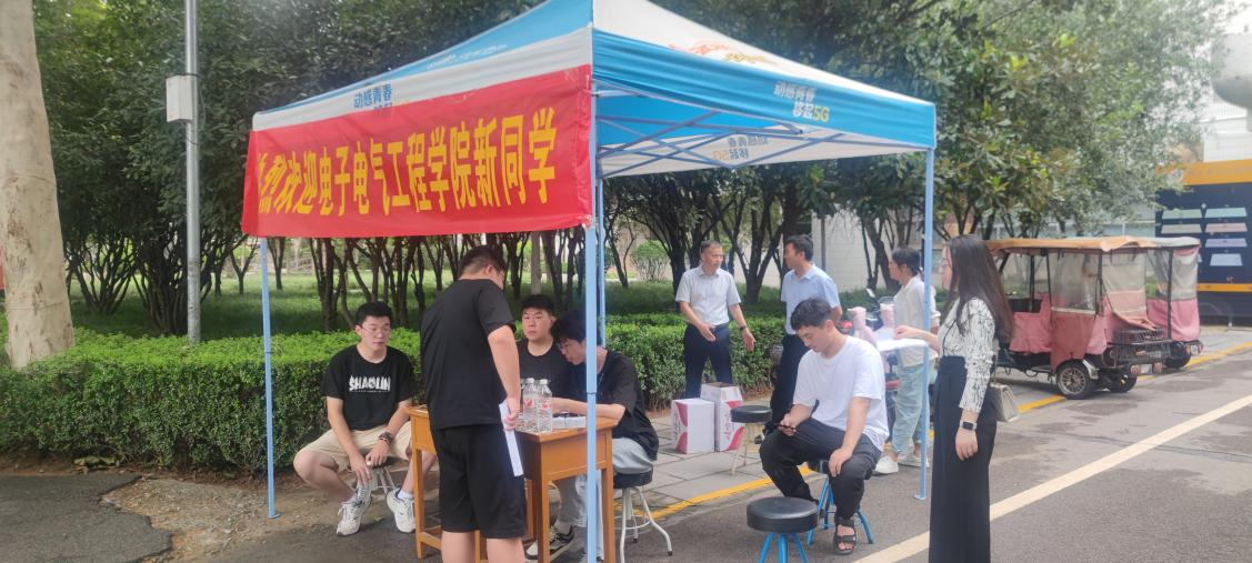 早上7点,公司领导班子、班主任老师、辅导员老师与员工志愿者们早早就位,将准备好的物资摆放得井然有序,公司老师与新生及家长展开亲切交流,志愿者们热情帮助新生搬行李,带领新生熟悉校园环境,让初来乍到的新生们感受到了电院大家庭的温暖。