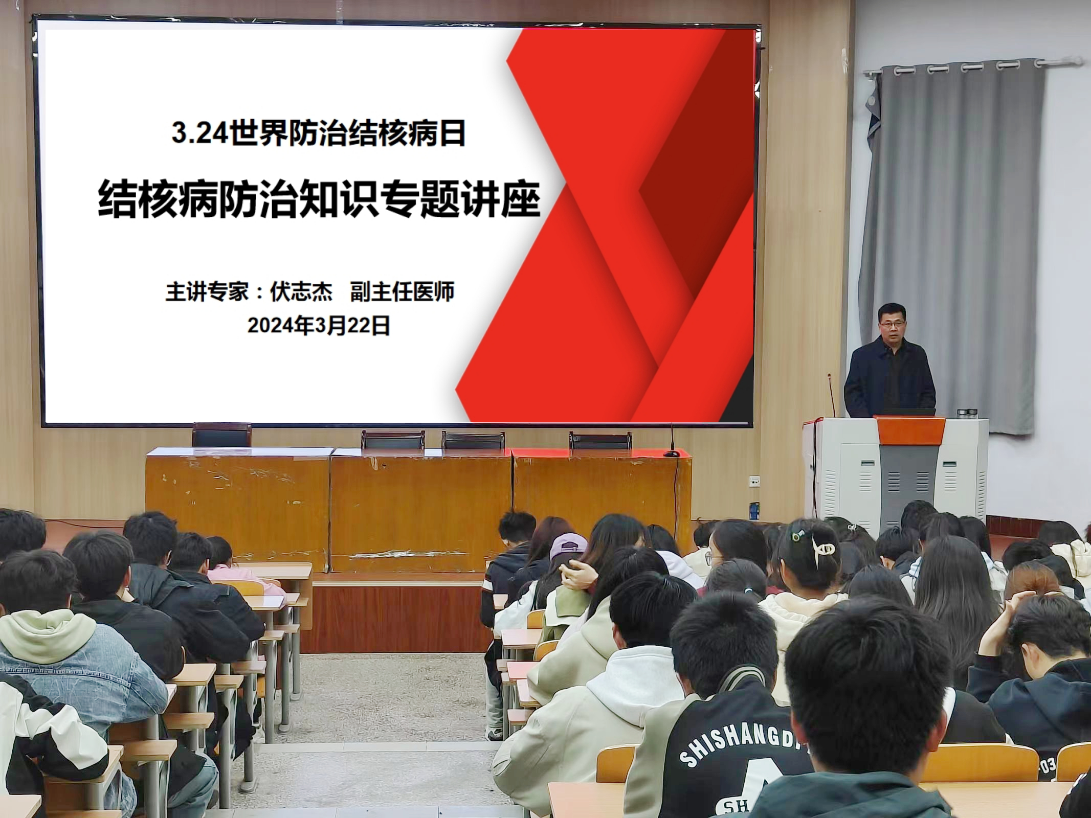 3月22日,受校医院特别邀请,商丘市胸科医院结核病专家、副主任医师伏志杰在睢阳校区为公司开展结核病防治知识专题讲座,公司党委副书记蒋玉涛、校医院副经理陈亚丽、商丘市胸科医院结防科主任马琳、22级辅导员郑敏出席,各年级宿舍长和员工代表共计180余人参加。